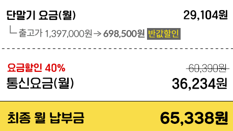 5. 최종적으로 월 내야할 총 지불금액과 약정기간 총 납부 금액 확인하기
