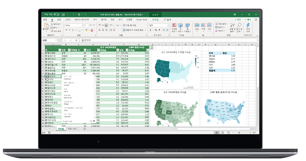 오피스365는 오피스2019와 달리 항상 최신 버전의 기술를 지원받으면서 또한 클라우드 연결이 되기 때문에 실시간 공동작업이 가능하고 엑셀 예측 시트나 디자인 자동제안 등 AI 기능을 지원하고 있습니다.