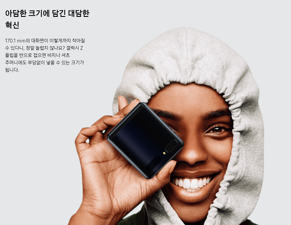 스마트폰 액정이 점차 커지고 있고, 실제로 갤럭시 폴드의 경우 접었다 펼치면 스마트폰이 아닌 태블릿 같은 넓은 크기가 되었었는데요. 갤럭시z 플립의 경우 이전 폴더폰처럼 비슷한 스마트폰 크키를 좀 더 작게 휴대하는 느낌으로 디자인 되어있습니다.