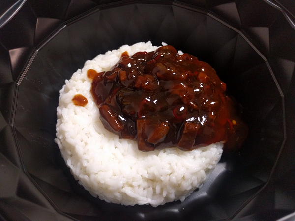 (1) 덮밥 소스와 즉석밥을 용기에 넣는다