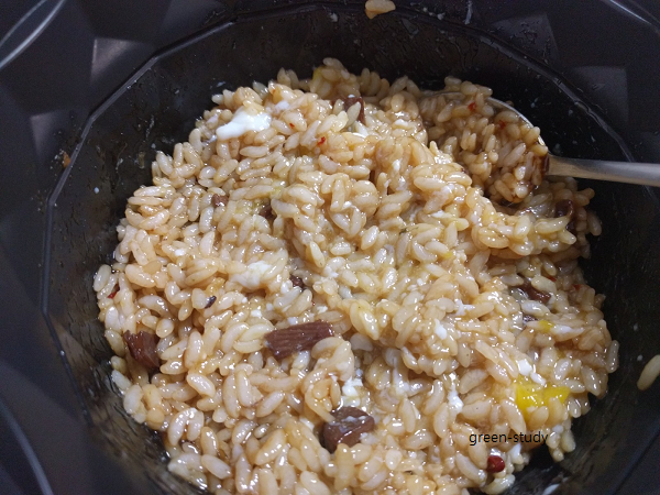 (1) 끓는 물에 밥과 뜯지 않은 덮밥 소스를 10분간 끓인다