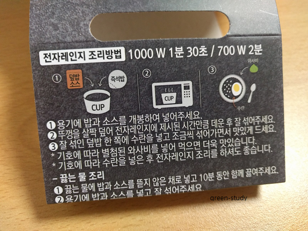내용물은 수란, 덮밥 소스, 즉석밥, 와사비가 들어있었습니다.