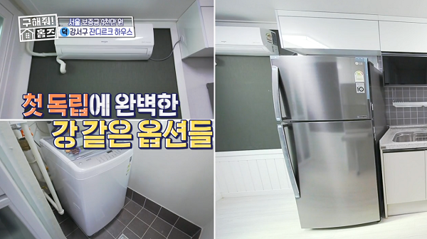 서울 강서구 잔디르크 하우스는 옵션도 꽤 좋았는데요. 꽤 큰 신형 냉장고, 에어컨, 세탁기가 기본 옵션으로 구비가 되어있어서 자취하는 분에게 있어서 첫 이사 경비를 줄이는 데 도움이 되는 부분이 있습니다.
