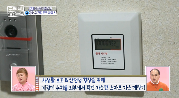 1층에 CCTV가 2개나 있고, 무인택배함, 경비하시는 분이 지키고 계시면서 신축인 곳이었습니다. 서울 강서구 잔디르크 하우스의 장점은 보안, 안전인데요. 여자 혼자 거주할 경우 가스 검침으로 위장하여 노리는 경우가 있는데, 입구에 아예 계량기가 밖에 있어서 굳이 집에 검침원이 들어오지 않아도 되는 것이 장점이었습니다.