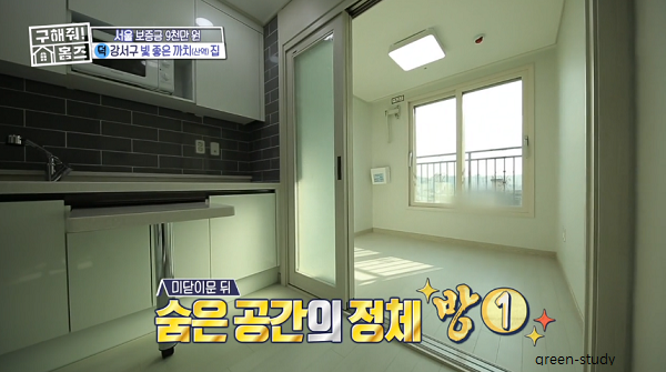 단점은 부엌의 음식 냄새를 빼기 위한 창이 외부가 아니라 아파트 복도 쪽으로 나와있다는 점이 아쉬운 점이긴 합니다.