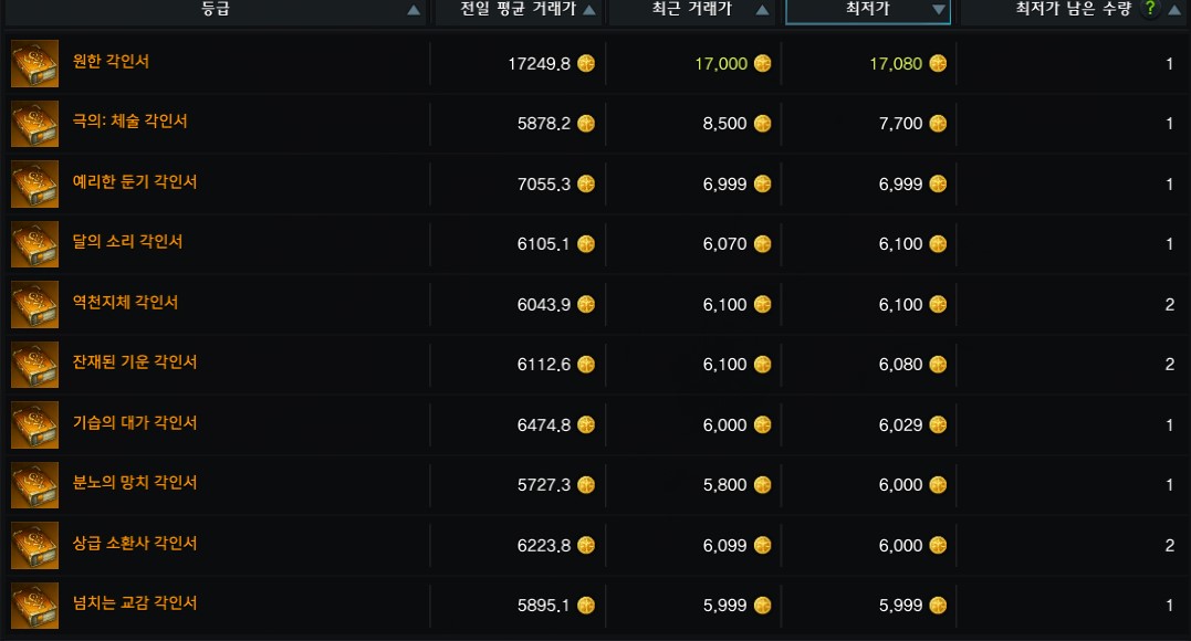 서머너는 직업 각인 효율도 좋다보니, 반지 각인도 전설 각인서까지 활용하여 직업각인서를 12포인트까지 풀로 채운 경우도 있었는데요. 그만큼 각인서가 중요한 직업군 중 하나입니다. 직업 각인의 경우 어빌리스톤에 없기 때문에 별도로 직업 각인서나 장신구에서 수급해야하기 때문에 셋팅 비용이 높은 편입니다.