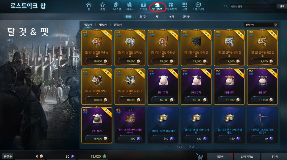 시즌별로 업데이트할 때 다양한 펫을 판매하는데요. 이번에는 소 펫입니다.