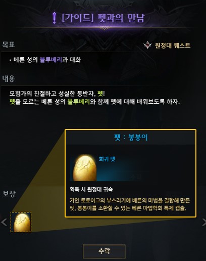 [가이드] 펫과의 만남 퀘스트를 진행하시면 무료 펫을 획득할 수 있습니다.