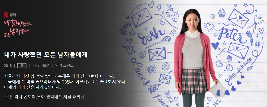 하이틴 로맨스 장르로 줄거리는 주인공 라라 진이 언니의 전 남자 친구 조쉬를 남 몰래 좋아했던 것 뿐 아니라 자신이 짝사랑 했던 남자들에게 러브 레터를 쓰고, 혼자 보관해두었었는데 갑자기 남자들에게 러브 레터가 배송되며 생긴 일을 담고 있습니다.