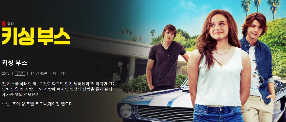 하이틴 로맨스로 2013년도 베스트 셀러에 오른적이 있는 《키싱 부스》소설이 원작으로 조금 독특한 TMI이지만, 실제 커플이라고 하네요. 미국의 학교 생활, 파티를 배경으로 사랑과 우정 사이의 설레임과 밝은 느낌을 담았습니다.