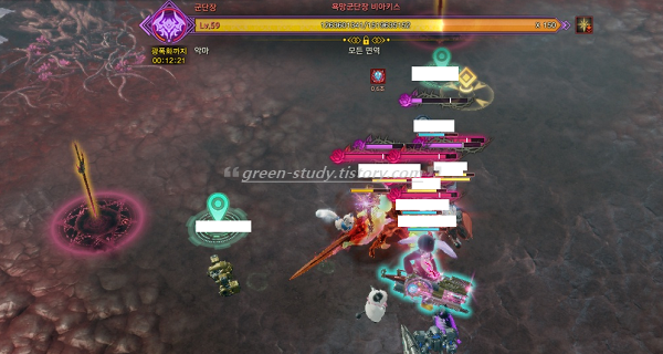 170줄에서 절망의 늪 패턴이 나올 겁니다. 이후에 1번 파티의 딜러가 각성기를 사용해서 빠르게 155~153줄까지 내립니다. 이렇게 하면, 칼날 분신 패턴(욕망의 환영) 이 등장합니다. 매혹게이지 70%가 넘는 분이 두분 이상 계셔야 편합니다.