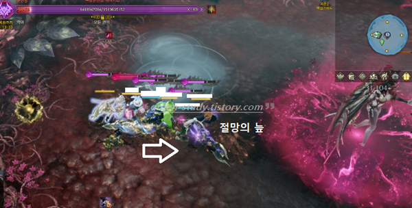 2줄 이후 광폭 상태가 되면 맵에서 보스의 위치를 확인하고 등 뒤로 가서 무력화를 해주면 됩니다. 이때 공대장은 에스더 웨이를 사용합니다.