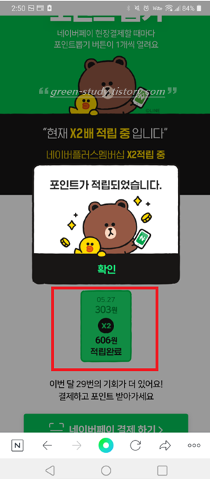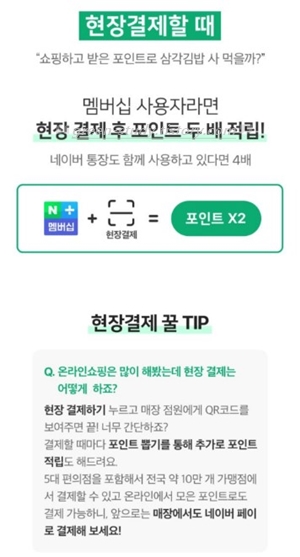 (1) 네이버 페이 어플 실행 → (2) 현장 결제하기에서 편의점 로고 클릭 → (3) 점원에게 QR코드 보여주기 과정을 거쳐서 바로 결제가 되었습니다. 미리 충전한 네이버포인트에서 바로 차감이 되었습니다.