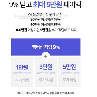 ※ 멤버십 데이 기간엔 기존 멤버십 적립 4% + 기본 적립 1%에 4% 추가하여 총 9% 더 적립이 추가 되는 기간입니다.