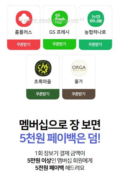 뿐만 아니라 멤버십 데이 기간 동안(23일부터 27일까지) ②1회 장보기 결제 금액이 5만원 이상인 경우 5천원 페이백을 하고 있습니다.
