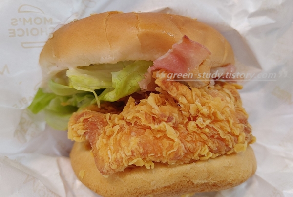 치킨 패티 안에 체다 치즈가 녹아서 들어 있는데요. 가격대비 성능은 좋은 편입니다.