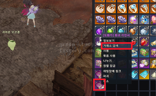 직접 옵션을 경매장에서 검색하는 방법도 있고, 인벤토리에 있는 아이템을 Ctrl + 우클릭하여 [경매장 시세]를 클릭하여 확인할 수 있습니다.