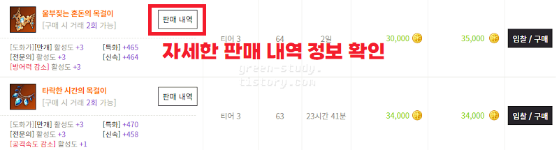 홈페이지에서 확인하면 인 게임보다 장기간 판매 거래 내역을 확인할 수 있습니다.