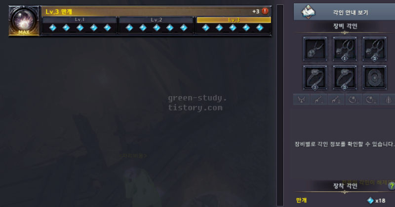 ▲ 각인서 9 + 9로 직업 각인서 1줄을 채운 상태