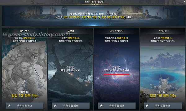 📌 2021년 7월 21일 업데이트로 인해 토요일, 일요일에도 카오스 게이트가 등장하게 추가가 되었습니다.