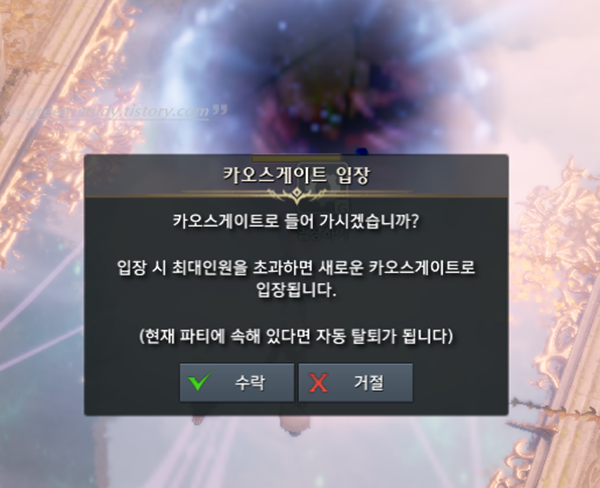 ▶레벨보다 높은 대륙의 카오스 게이트는 입장 불가하며, 딜 기여도가 있어야 보상을 받을 수 있고 1일 1회 보상 획득만 가능합니다. (※ 서포트 캐릭터라면 딜 스킬 모드로 들어가야 보상 획득 가능)