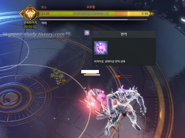 이후에는 내부에서 프로켈을 제거한 유저가 나와서 같이 프로켈의 사념체를 제거하면 공략에 성공 하게 됩니다. 내부의 피를 확인하고 외부에서 10줄에서 5줄 정도 피를 남겨 대기하고 있다가 내부를 잡은 후 바로 외부도 잡으면 빠르게 클리어가 가능합니다.