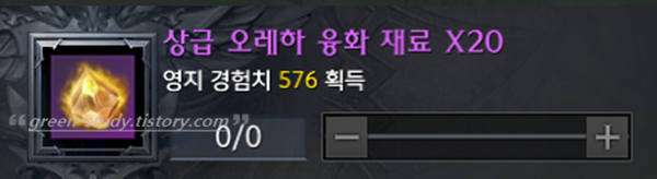 필드에서 경쟁이 빡세다고 생각하거나 귀찮으신 분들은 자신이 사용하려고 하는 오레하 융화 재료를 자체 수급하는 것도 가능합니다.