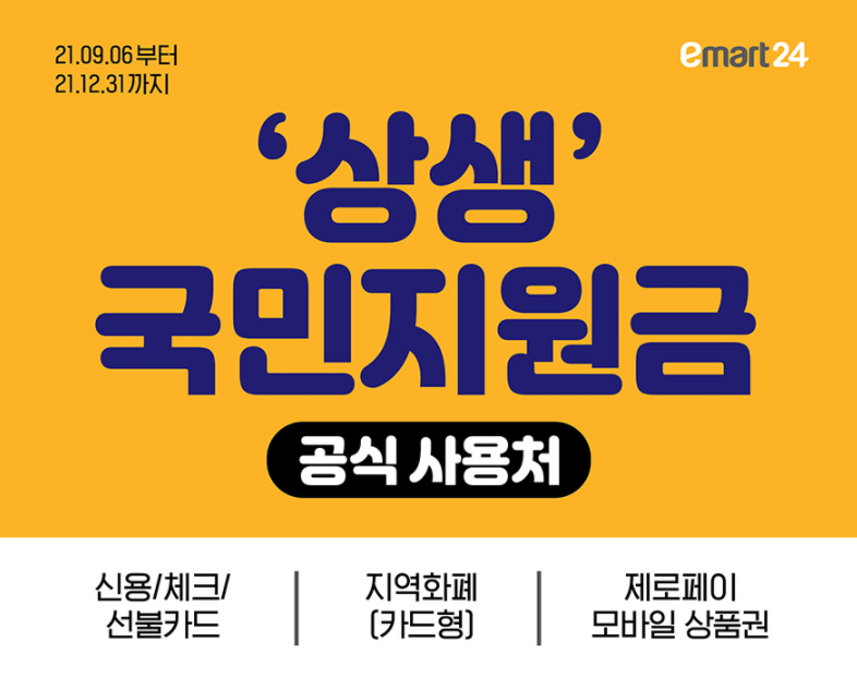 이마트24 편의점 중에서 직영점이 아닌 '가맹점'에서 구입할 수 있습니다. 편의점 가맹점의 경우 소상공인에 해당하는 곳(연 매출 기준)에 충족될 경우 편의점에서 재난지원금 사용이 가능합니다.