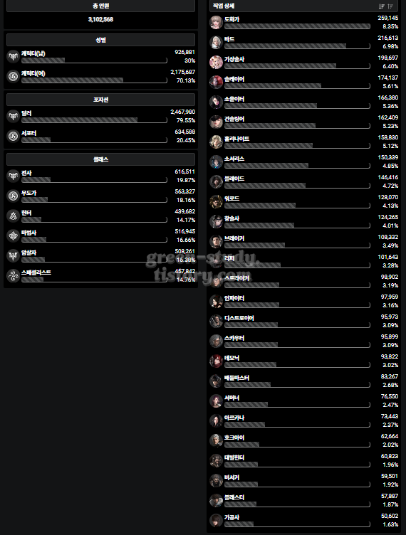 로스트아크 직업 순위, 분포도 정리 (2024년 2월)