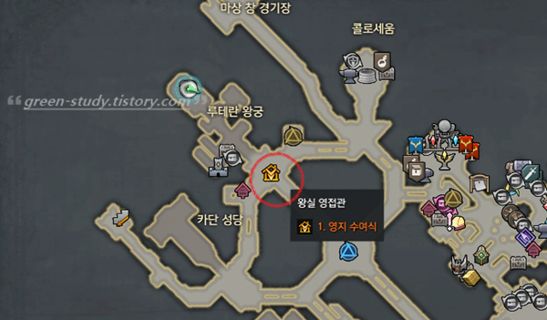 - '루테란 왕국 재건' 퀘스트 중 '영지 수여식' 수락
