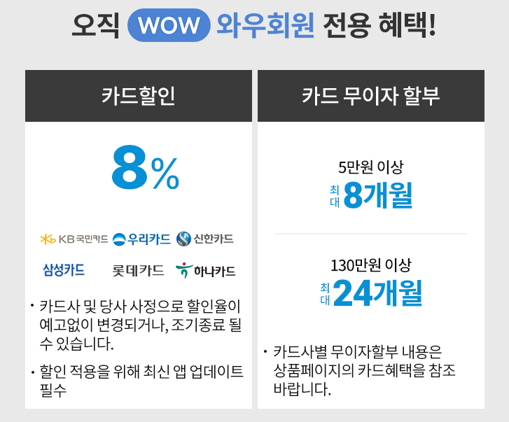 카드할인 8% (와우 회원)