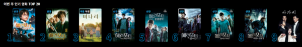 현재 영화 컨텐츠에서 1위에서 8위까지 순위권에 있습니다.