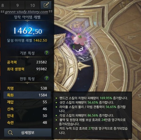 위의 이미지 처럼 1584 특화 기준으로 치명타 피해량이 169.95% 증가 된 것을 확인 할 수가 있는데요.
