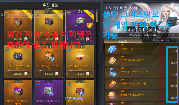 또한 블루 크리스탈의 경우 인 게임 재화를 구입하는 데 필요한데 골드로도 구입할 수 있고, 현금으로도 블루 크리스탈을 구입할 수 있습니다.