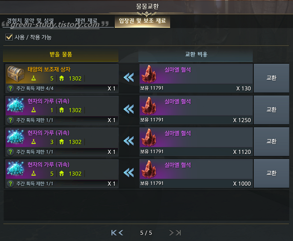 2. 실마엘 혈석 교환 (1주일에 최대 3개)