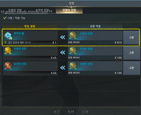 매일 출석 (Alt + U) 및 기부, 주간 길드 의뢰 등을 통해 얻을 수 있는 실마엘 혈석으로 NPC와 물물 교환할 수 있습니다.