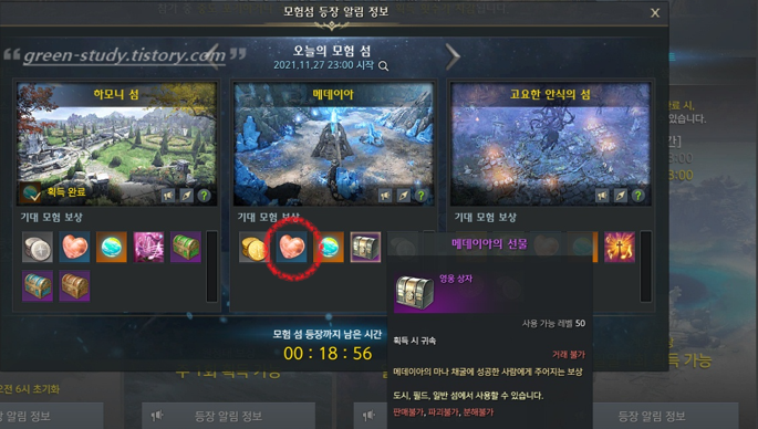 ① 모험 섬 보상