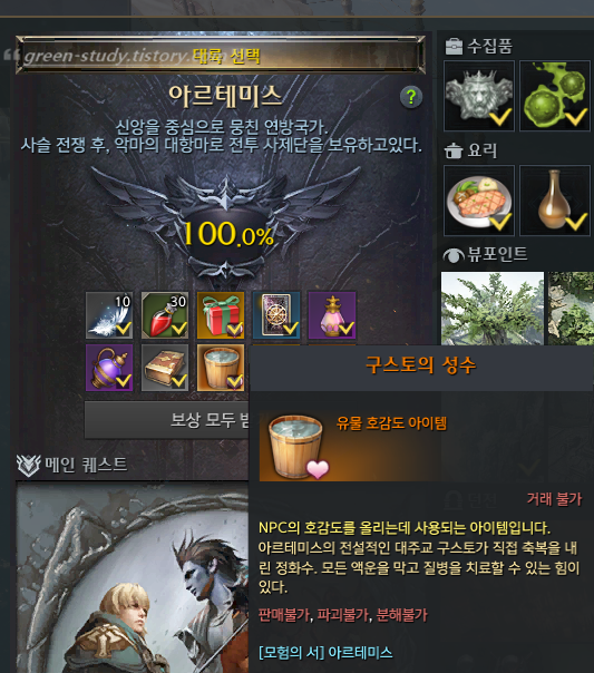 각 대륙 80%까지 도달하면 대체로 호감도 아이템을 획득할 수 있는데요. 모험의 서는 각 대륙 npc 호감도 신뢰 완료를 제외하면 80%까지 채워지기 때문에 빠르게 진행이 가능한 편입니다.