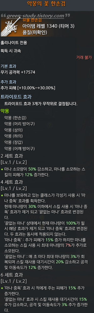 아마도, 왠만한 딜러 유저 분들은 악몽 아니면 환각을 착용하고 계실 겁니다. 하지만 여기에도 약간의 함정이 있습니다. 공격 속도가 빠르고 마나가 부족한 직업들은 악몽2피스, 환각4피스를 착용하는 것이 더 유리합니다.