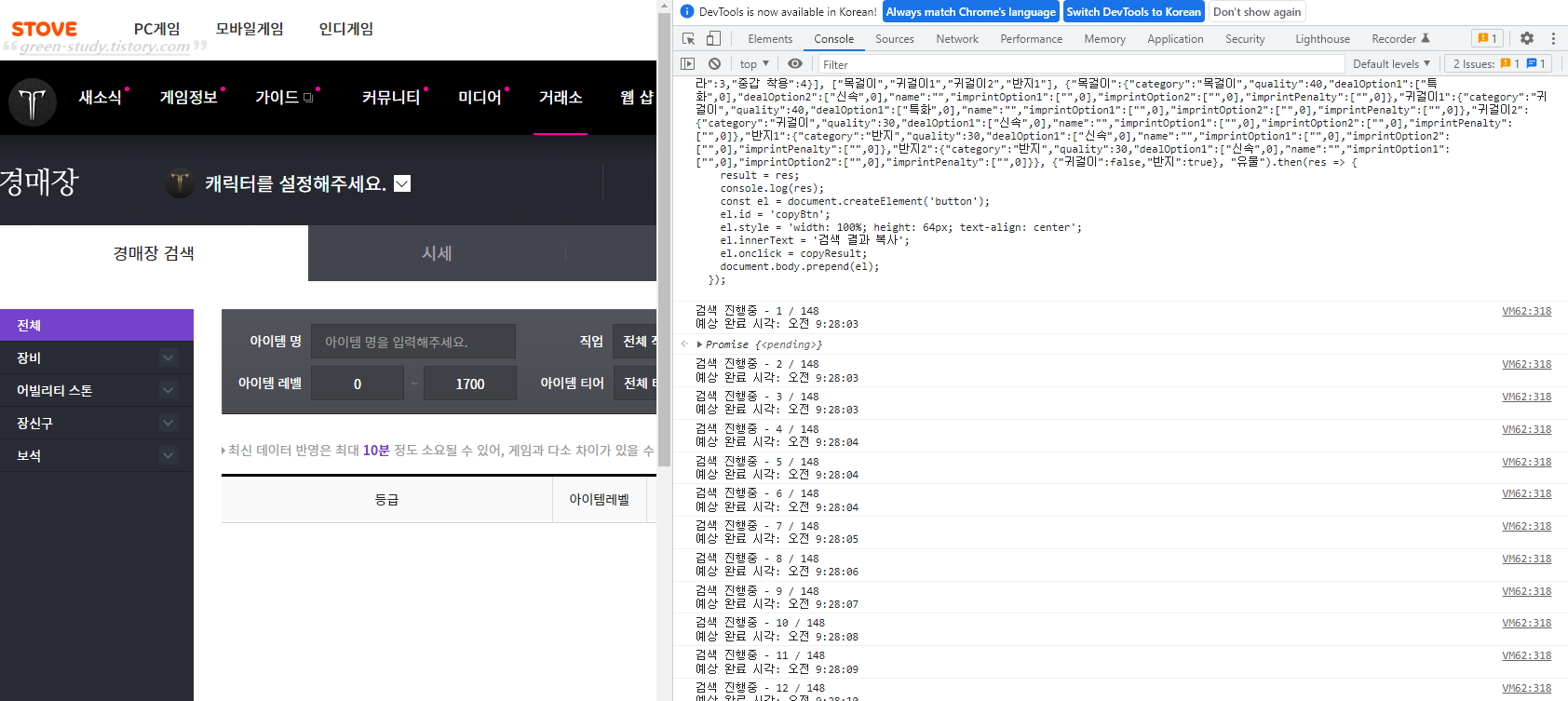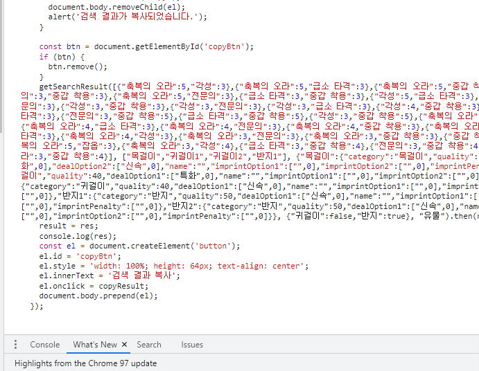 위와 엔터를 쳤는데 검색 작동하지 않고 Warning: Don’t paste code into the DevTools Console that you don’t understand or haven’t reviewed yourself. This could allow attackers to steal your identity or take control of your computer. Please type ‘allow pasting’ below and hit Enter to allow pasting.이라는 메세지가 나오면서 실패가 될 때가 있습니다.
