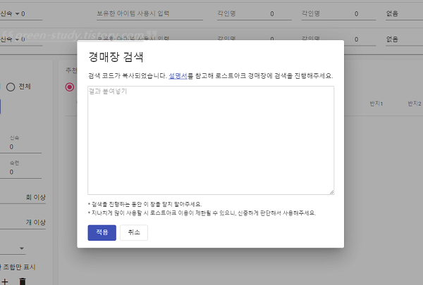 다시 아이스펭 사이트로 돌아가 검색 결과 복사 코드를 입력하고 [적용]을 클릭합니다.