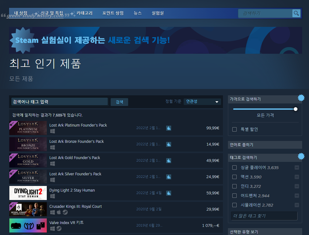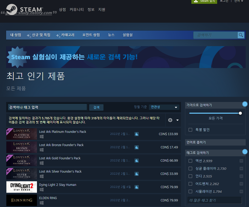 로스트아크 팩이 스팀 상위권을 차지하고 있습니다.