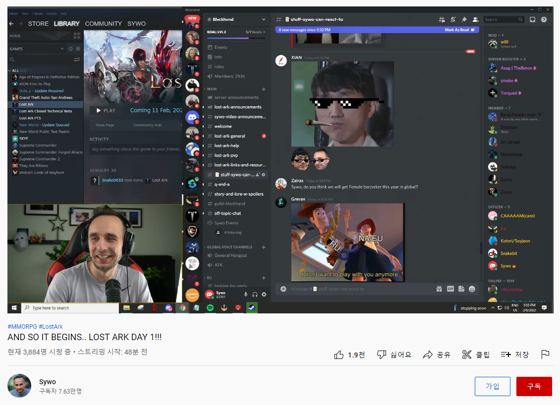 국내에서 잘 알려진 해외 로스트아크 스트리머로 sywo도 있습니다.