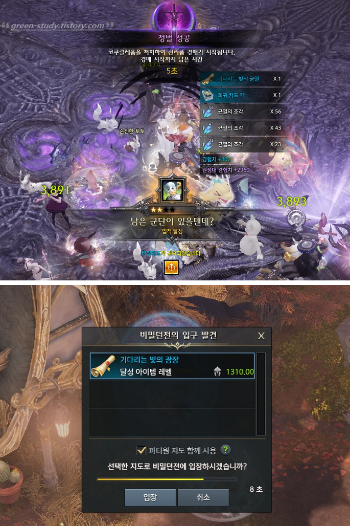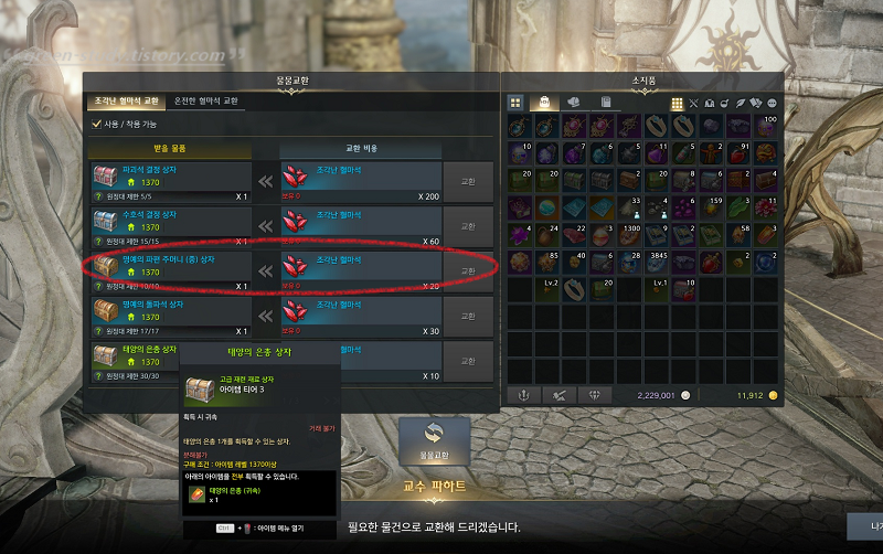 이곳에서 1370레벨 이상부터 명예의 파편(중) 10개를 획득 할 수가 있으며, 1415레벨 이상이라면, 명예의 파편 주머니(대) 30개를 획득 할 수가 있습니다. 이 밖에도 다양한 아이템을 획득 할 수가 있기 때문에, 꼭 퀘스트는 빠르게 밀어 보시길 권합니다.