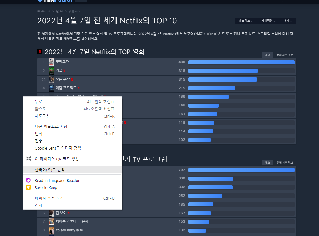 https://top10.netflix.com위의 사이트도 영어로 된 사이트입니다.