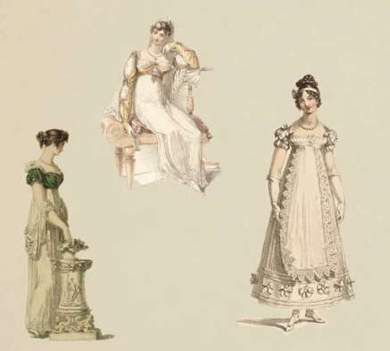 실제로 이 시대에 파티에 한번 입었던 옷은 다시 입지 않고 새로 만들어서 입었고, 아침 드레스, 외출시 산책할 때 입는 드레스, 이브닝 드레스, 승마 드레스 등 여러 가지 옷이 있었습니다. 이 시기를 다룬 소설로는 오만과 편견, 레 미제라블, 프랑켄슈타인, 뱀파이어가 있습니다.