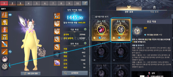 | 정밀 단도 | 치명타 적중률이 4% / 10% / 20% 증가하지만 치명타 피해가 12% 감소한다. |