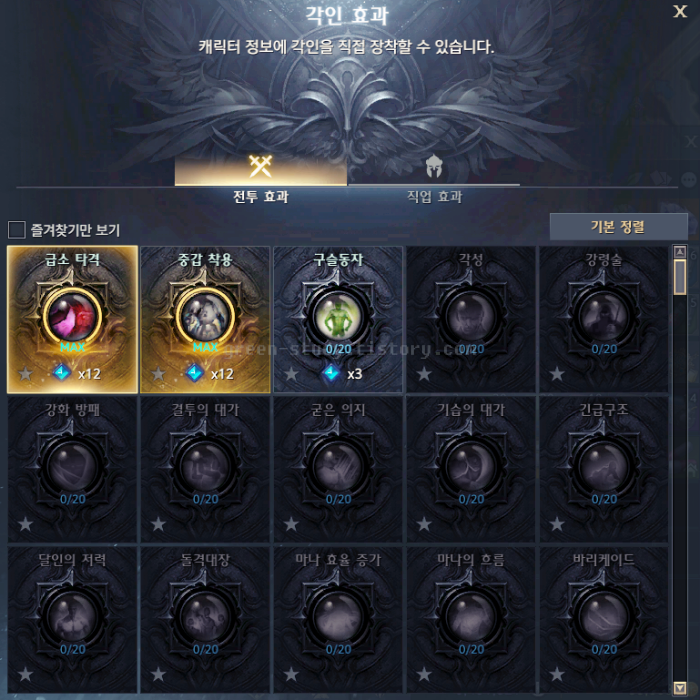 직업 각인은 해당 클래스만 사용할 수 있는 직업 전용 각인서 2종이 있고, 나머지 전투용 각인은 공용 각인서입니다.