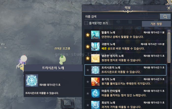트리시온에서 딜을 체크하는 방법은 단축키 [F2]로 악보 메뉴에서 [트리시온]을 클릭하여 노래 연주로 들어갈 수 있습니다. 베아트리스 NPC에서 [수련장]을 클릭하면 각인 셋팅을 미리 마음대로 설정해보고 DPS 측정하는 것이 가능합니다.