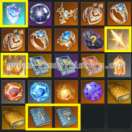 노란색 표시는 이전 던전에서 받지 않는 새로운 보상을 표시하였습니다.